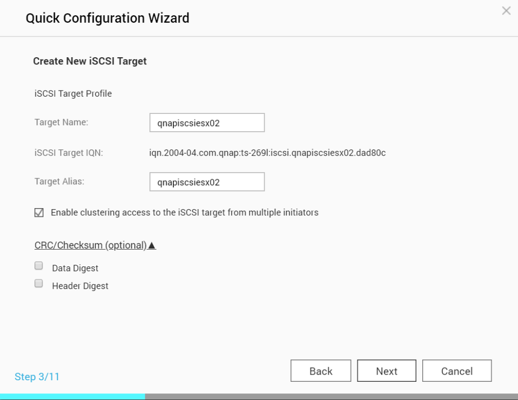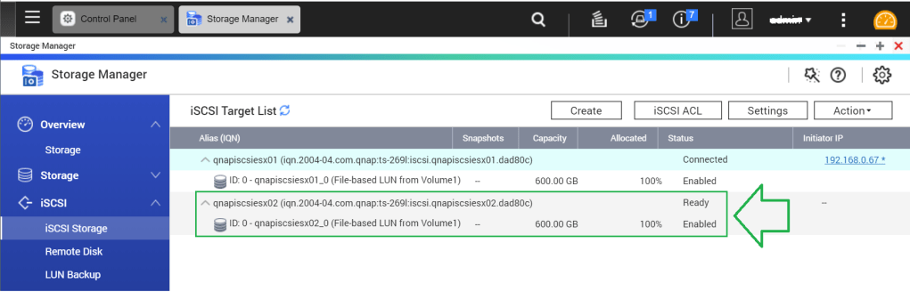 The iSCSI Target is created and enabled