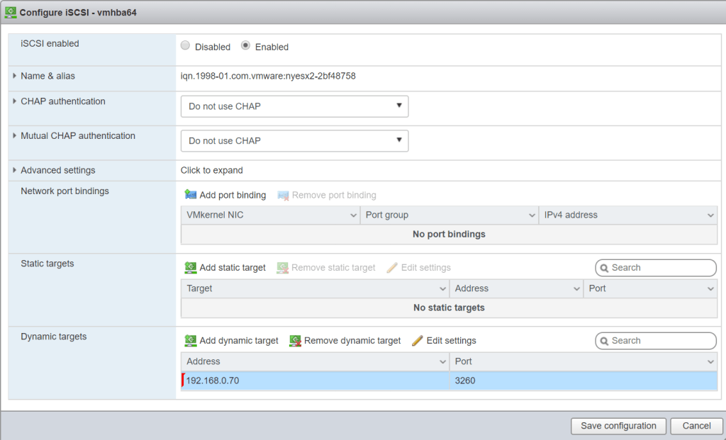 - NOTE: I did not enable CHAP Authentication (as this is a lab environment).